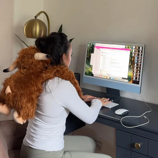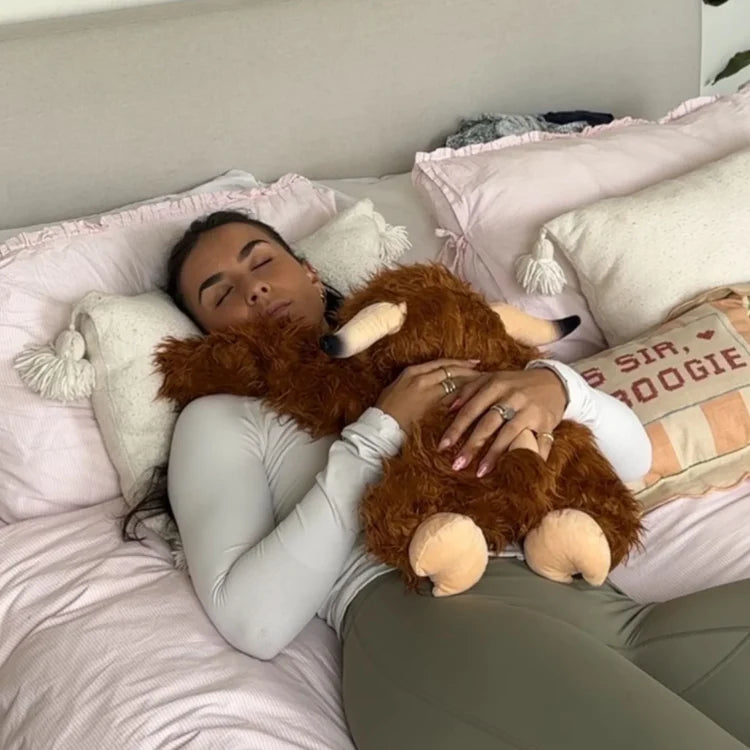 Por eso diseñamos nuestros animales con peso de forma diferente. Hallie, el panda, tiene brazos extra largos con peso que te envuelven y se quedan quietos mientras trabajas, lees o navegas por el teléfono. Hallie es como una manta con peso para llevar puesta, ¡pero mucho más suave y práctico!