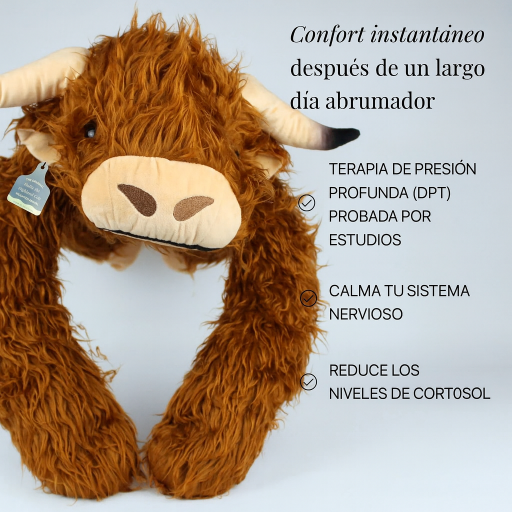 Huggy utiliza la terapia de presión profunda (tpp), una técnicacomprobada que ayuda a reducir el estrés y la ansiedad al disminuirlos niveles de cortisol y activar la respuesta natural de relajacióndel cuerpo.Es como una manta con peso que puedes abrazar, pero mucho másacogedora y tierna 🧸